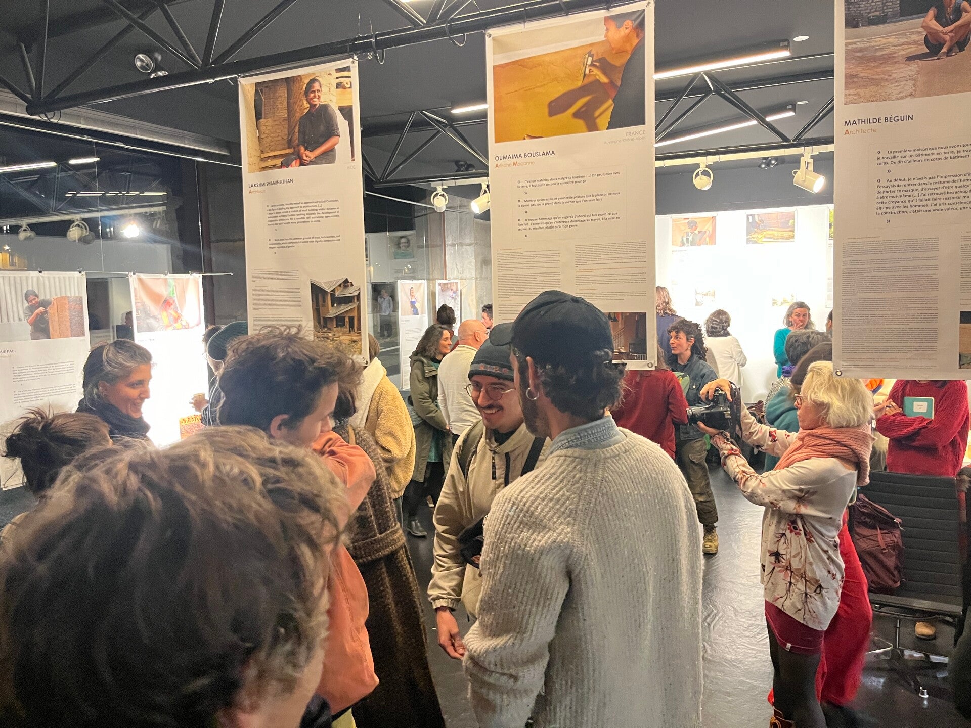 Exposition sur l'identité des professionnel.le.s de la terre lors des 8èmes assises nationales de la construction en terre crue, en juillet 2022 à Sevran
